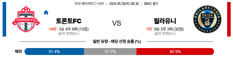 토론토 대 필라델피아 메이저리그사커 05월29일 맞대결 생중계, 스포츠중계, 스포츠분석