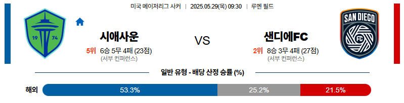 시애틀 대 샌디에고 메이저리그사커 05월29일 맞대결 생중계, 스포츠중계, 스포츠분석