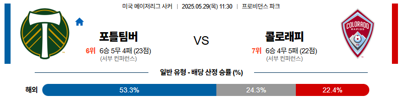 포틀랜드 대 콜로라도 메이저리그사커 05월29일 맞대결 생중계, 스포츠중계, 스포츠분석