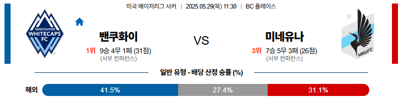 벤쿠버 대 미네소타 메이저리그사커 05월29일 맞대결 생중계, 스포츠중계, 스포츠분석