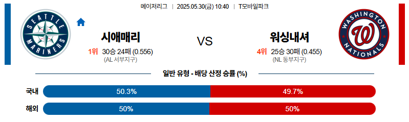 시애틀 대 워싱턴 MLB 05월30일 맞대결 생중계, 스포츠중계, 스포츠분석