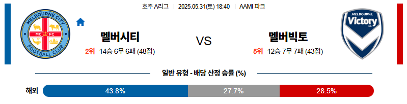 멜버른시티 대 멜버른빅토리 호주A리그 05월31일 맞대결 생중계, 스포츠중계, 스포츠분석