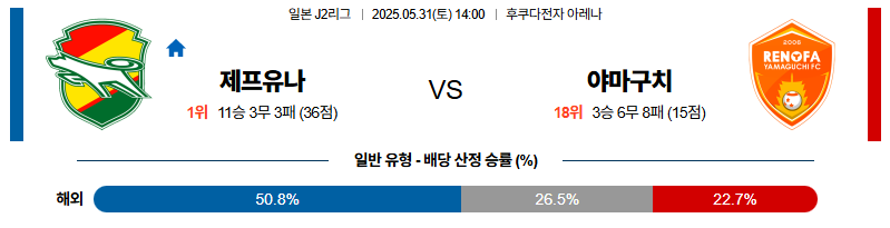 제프유나이티드 대 야마구치 J리그2 05월31일 맞대결 생중계, 스포츠중계, 스포츠분석