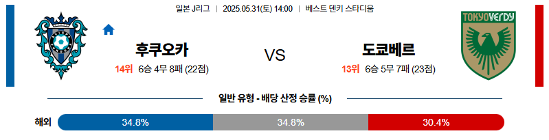 후쿠오카 대 도쿄베르디 J리그1 05월31일 맞대결 생중계, 스포츠중계, 스포츠분석