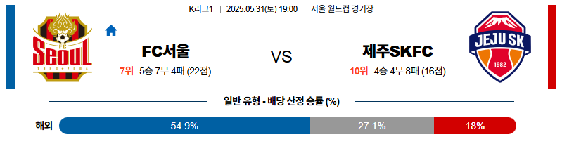 FC서울 대 제주유나이티드 K리그1 05월31일 맞대결 생중계, 스포츠중계, 스포츠분석