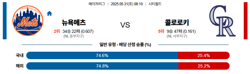 뉴욕메츠 대 콜로라도 MLB 05월31일 맞대결 생중계, 스포츠중계, 스포츠분석