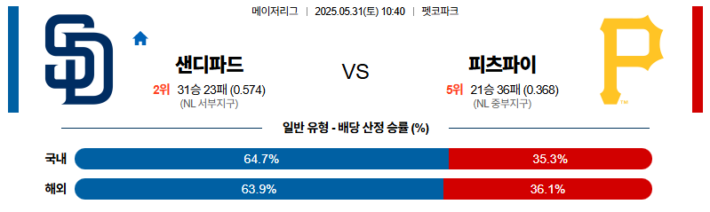 샌디에이고 대 피츠버그 MLB 05월31일 맞대결 생중계, 스포츠중계, 스포츠분석