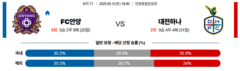 안양 대 대전 K리그1 05월31일 맞대결 생중계, 스포츠중계, 스포츠분석