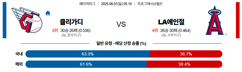 클리블랜드 대 LA에인절스 MLB 06월01일 맞대결 생중계, 스포츠중계, 스포츠분석