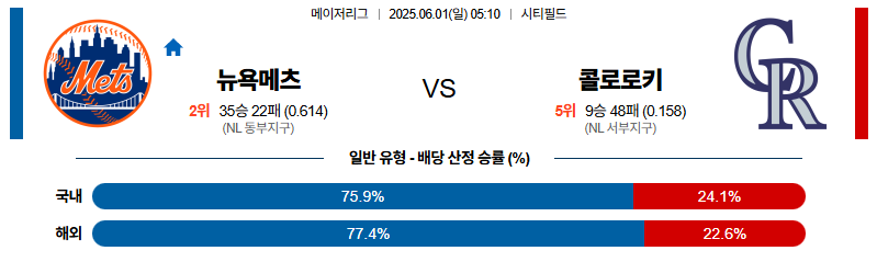 뉴욕메츠 대 콜로라도 MLB 06월01일 맞대결 생중계, 스포츠중계, 스포츠분석