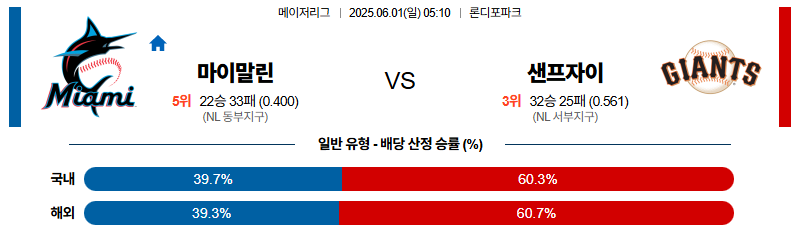 마이애미 대 샌프란시스코 MLB 06월01일 맞대결 생중계, 스포츠중계, 스포츠분석