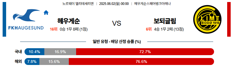 하우게순 대 보되글림트 노르웨이1부 06월02일 맞대결 생중계, 스포츠중계, 스포츠분석