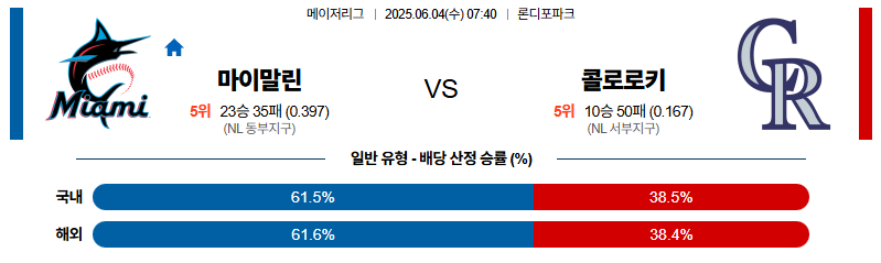 마이애미 대 콜로라도 MLB 06월04일 맞대결 생중계, 스포츠중계, 스포츠분석