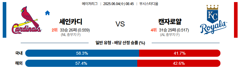 세인트루이스 대 캔자스시티 MLB 06월04일 맞대결 생중계, 스포츠중계, 스포츠분석