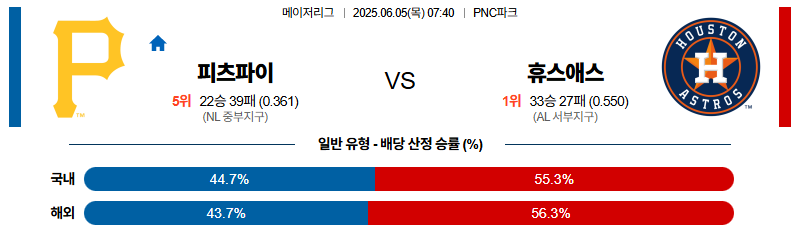 피츠버그 대 휴스턴 MLB 06월05일 맞대결 생중계, 스포츠중계, 스포츠분석