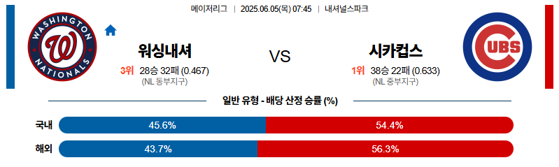 워싱턴 대 시카고컵스 MLB 06월05일 맞대결 생중계, 스포츠중계, 스포츠분석