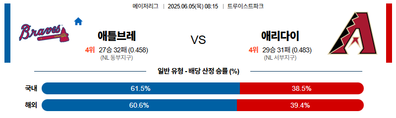 애틀랜타 대 애리조나 MLB 06월05일 맞대결 생중계, 스포츠중계, 스포츠분석
