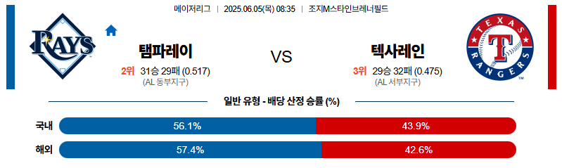 탬파베이 대 텍사스 MLB 06월05일 맞대결 생중계, 스포츠중계, 스포츠분석