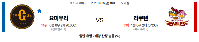 요미우리 대 라쿠텐 NPB 06월06일 맞대결 생중계, 스포츠중계, 스포츠분석