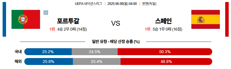 포르투갈 대 스페인 UEFA네이션스리그 06월09일 맞대결 생중계, 스포츠중계, 스포츠분석