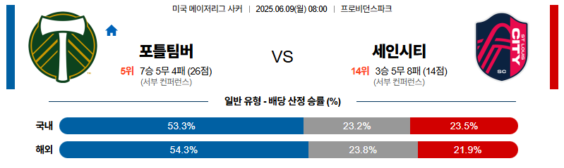 포틀랜드 대 세인트루이스 메이저리그사커 06월09일 맞대결 생중계, 스포츠중계, 스포츠분석
