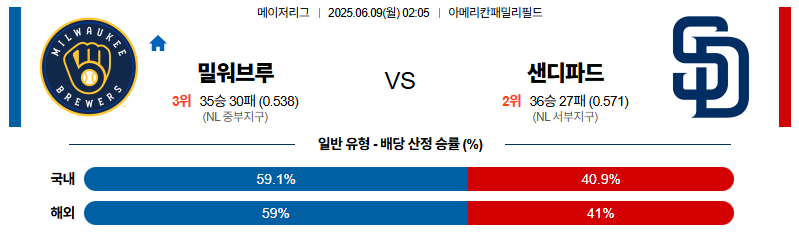밀워키 대 샌디에이고 MLB 06월09일 맞대결 생중계, 스포츠중계, 스포츠분석