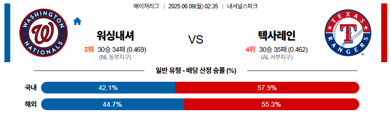 워싱턴 대 텍사스 MLB 06월09일 맞대결 생중계, 스포츠중계, 스포츠분석