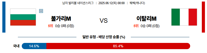 불가리아 대 이탈리아 네이션스리그 06월12일 맞대결 생중계, 스포츠중계, 스포츠분석