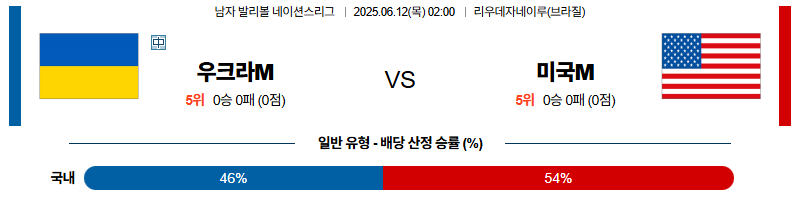 우크라이나 대 미국 네이션스리그 06월12일 맞대결 생중계, 스포츠중계, 스포츠분석