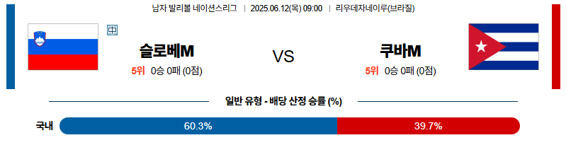 슬로베니아 대 쿠바 네이션스리그 06월12일 맞대결 생중계, 스포츠중계, 스포츠분석