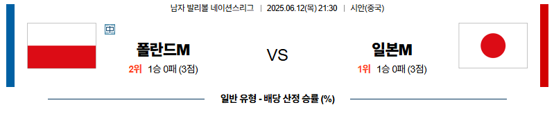 폴란드 대 일본 네이션스리그 06월12일 맞대결 생중계, 스포츠중계, 스포츠분석