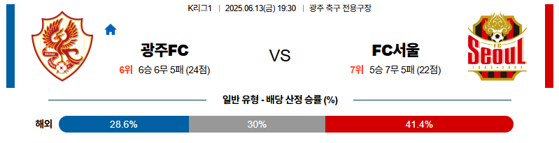 광주 대 FC서울 K리그1 06월13일 맞대결 생중계, 스포츠중계, 스포츠분석
