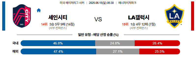 세인트루이스 대 LA갤럭시 메이저리그사커 06월15일 맞대결 생중계, 스포츠중계, 스포츠분석