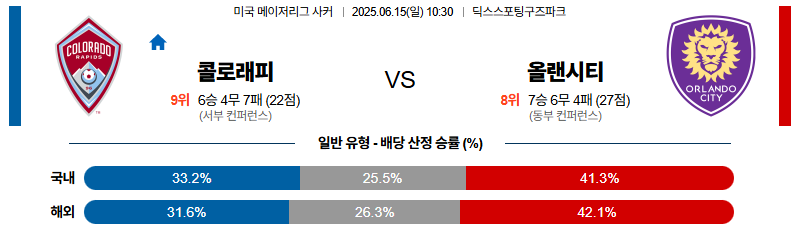 콜로라도 대 올랜도 메이저리그사커 06월15일 맞대결 생중계, 스포츠중계, 스포츠분석