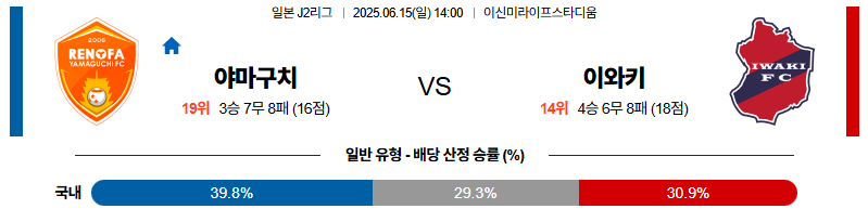 야마구치 대 이와키 J리그2 06월15일 맞대결 생중계, 스포츠중계, 스포츠분석