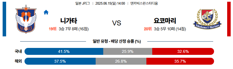 니가타 대 요코하마마리노스 J리그1 06월15일 맞대결 생중계, 스포츠중계, 스포츠분석