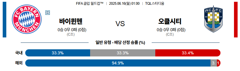 바이에른뮌헨 대 오클랜드시티 FIFA클럽월드컵 06월16일 맞대결 생중계, 스포츠중계, 스포츠분석