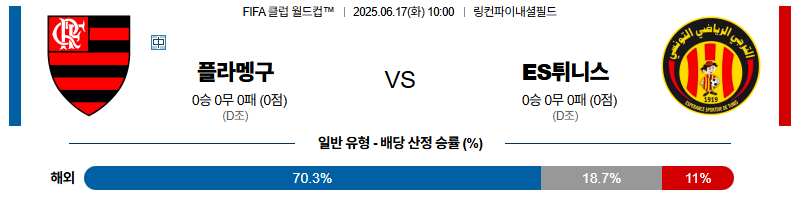 플라멩고 대 에스페란스튀니스 FIFA클럽월드컵 06월17일 맞대결 생중계, 스포츠중계, 스포츠분석