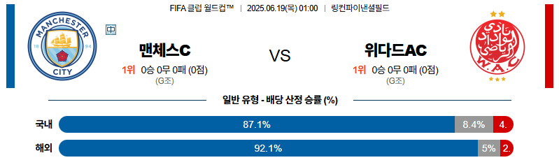 맨시티 대 외다드 FIFA클럽월드컵 06월19일 맞대결 생중계, 스포츠중계, 스포츠분석