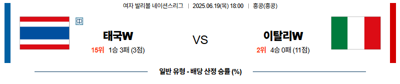 태국 대 이탈리아 네이션스리그(w) 06월19일 맞대결 생중계, 스포츠중계, 스포츠분석