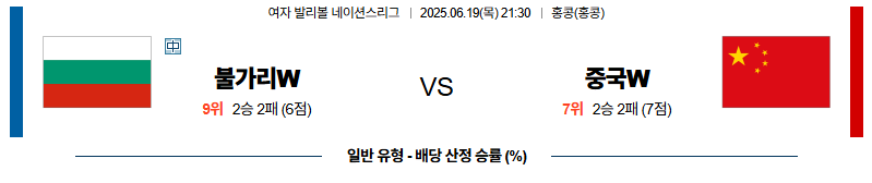 불가리아 대 중국 네이션스리그(w) 06월19일 맞대결 생중계, 스포츠중계, 스포츠분석