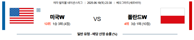미국 대 폴란드 네이션스리그(w) 06월19일 맞대결 생중계, 스포츠중계, 스포츠분석