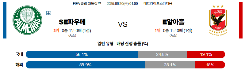 팔메이라스 대 알아흘리 FIFA클럽월드컵 06월20일 맞대결 생중계, 스포츠중계, 스포츠분석