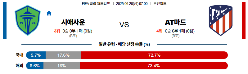 시애틀 대 AT마드리드 FIFA클럽월드컵 06월20일 맞대결 생중계, 스포츠중계, 스포츠분석