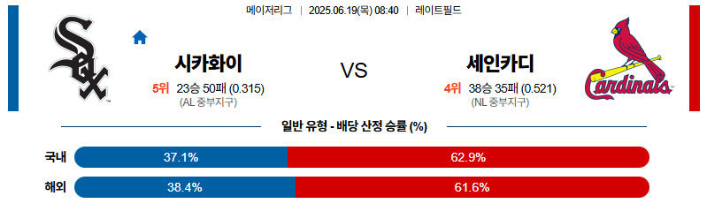 시카고W 대 세인트루이스 MLB 06월19일 맞대결 생중계, 스포츠중계, 스포츠분석