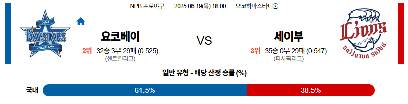 요코하마 대 세이부 NPB 06월19일 맞대결 생중계, 스포츠중계, 스포츠분석