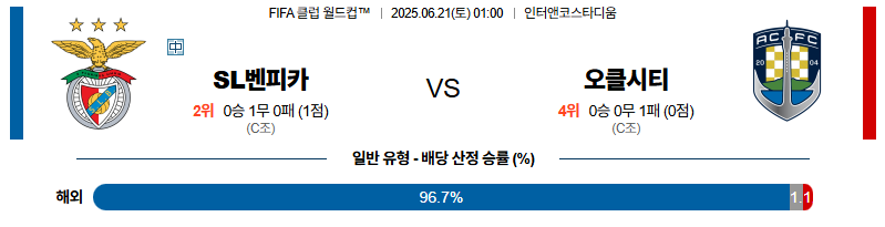 벤피카 대 오클랜드시티 FIFA클럽월드컵 06월21일 맞대결 생중계, 스포츠중계, 스포츠분석