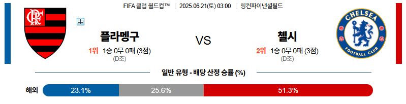 플라멩고 대 첼시 FIFA클럽월드컵 06월21일 맞대결 생중계, 스포츠중계, 스포츠분석