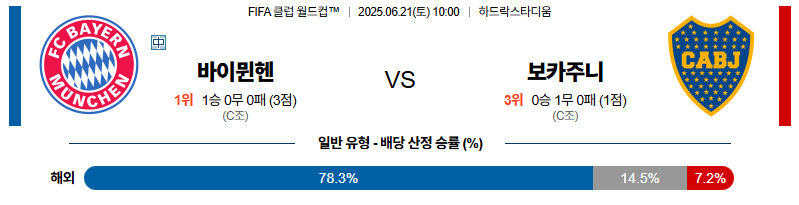 바이에른뮌헨 대 보카주니어스 FIFA클럽월드컵 06월21일 맞대결 생중계, 스포츠중계, 스포츠분석