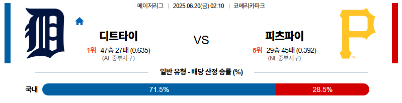 디트로이트 대 피츠버그 MLB 06월20일 맞대결 생중계, 스포츠중계, 스포츠분석